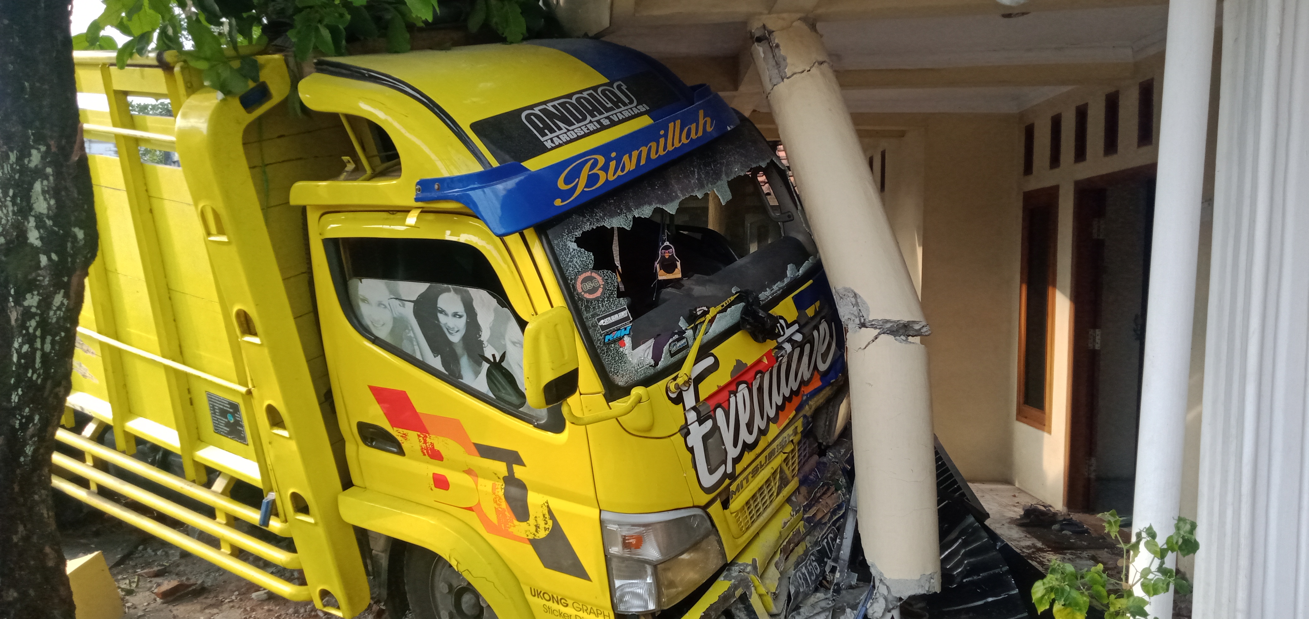 “Akibatnya bagian pagar depan rumah rusak, tapi alhamdulillah tidak ada korban, keluarga aman dan juga pada sehat. Untuk sopirnya hanya mengalami luka ringan saja,” lanjutnya.